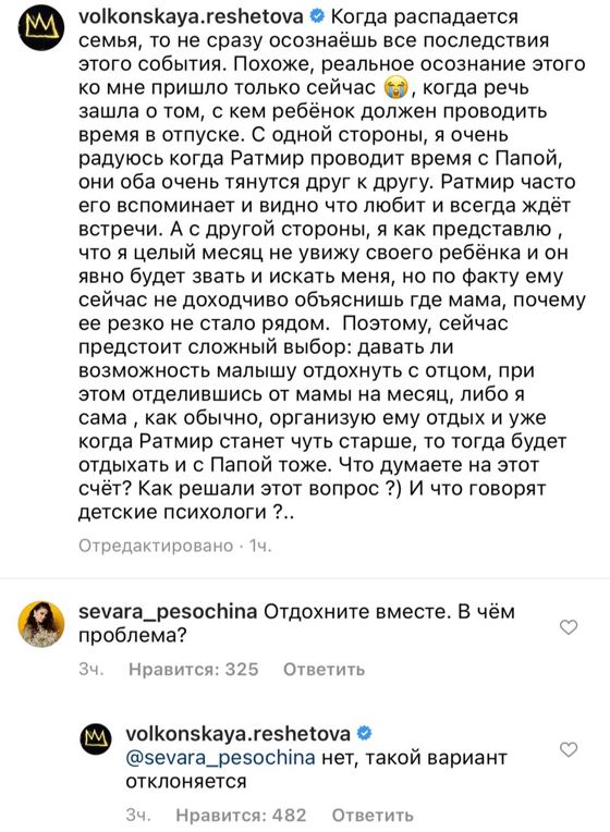 Когда распадается семья, то не сразу осознаёшь все последствия этого события. Похоже, реальное осознание этого ко мне пришло только сейчас, когда речь зашла о том, с кем ребёнок должен проводить время в отпуске. С одной стороны, я очень радуюсь когда Ратмир проводит время с Папой, они оба очень тянутся друг к другу. А с другой стороны, я как представлю , что я целый месяц не увижу своего ребёнка и он явно будет звать и искать меня, - пишет в своем посте модель.