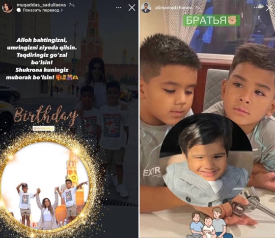 В свою очередь Йигитали Мамаджанов опубликовал в Stories коллаж с фотографиями двойняшек и сына МухаммадСидикка от брака с Мукаддас Садуллаевой.
