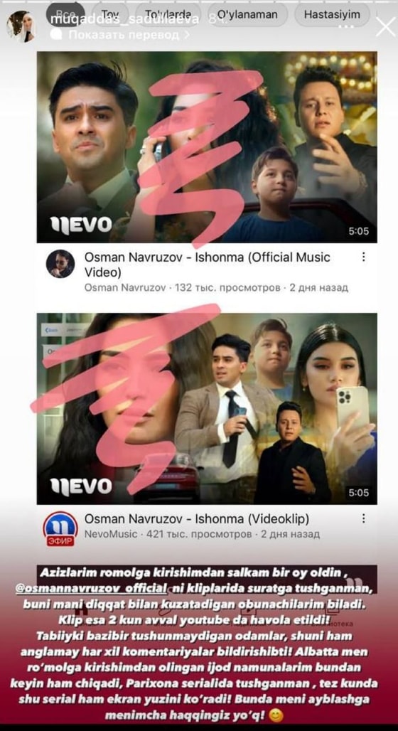 Дорогие, за месяц до того, как я надела хиджаб, я снималась в клипе Османа Наврузова. Ролик вышел в сети два дня назад. Конечно, некоторые люди, которые не понимают, даже не осознавая этого, пишут всевозможные комментарии! Естественно, мое творчество, когда я была без платка, будет и дальше появляться, – пишет Мукаддас Садуллаева.
