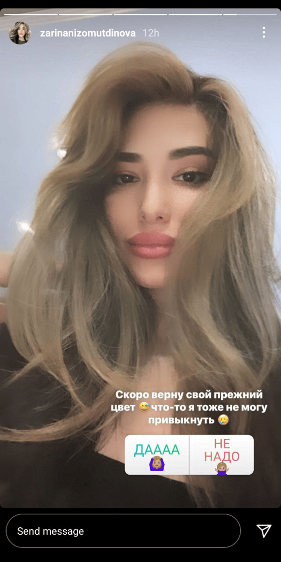 Также Зарина Низомиддинова устроила опросник, стоит ли ей перекрашиваться или нет.