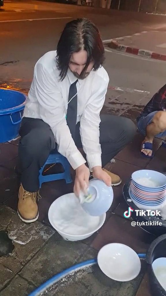 В TikTok «завирусились» снимки мужчины, похожего на Киану Ривза. Оказывается, он продает тайский чай на рынке и моет посуду.