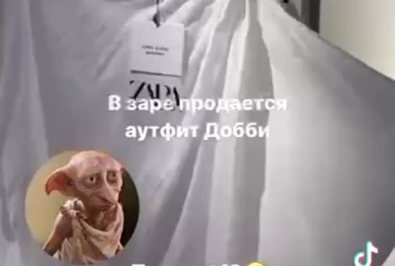На платформе TikTok все чаще начали появляться видео пользователей, которые показывают новый товар в магазинах Zara. Девушка сняла видео в самом бутике, показав, что там начали продавать платье-наволочку героя из фильмов «Гарри Поттер» – Добби.