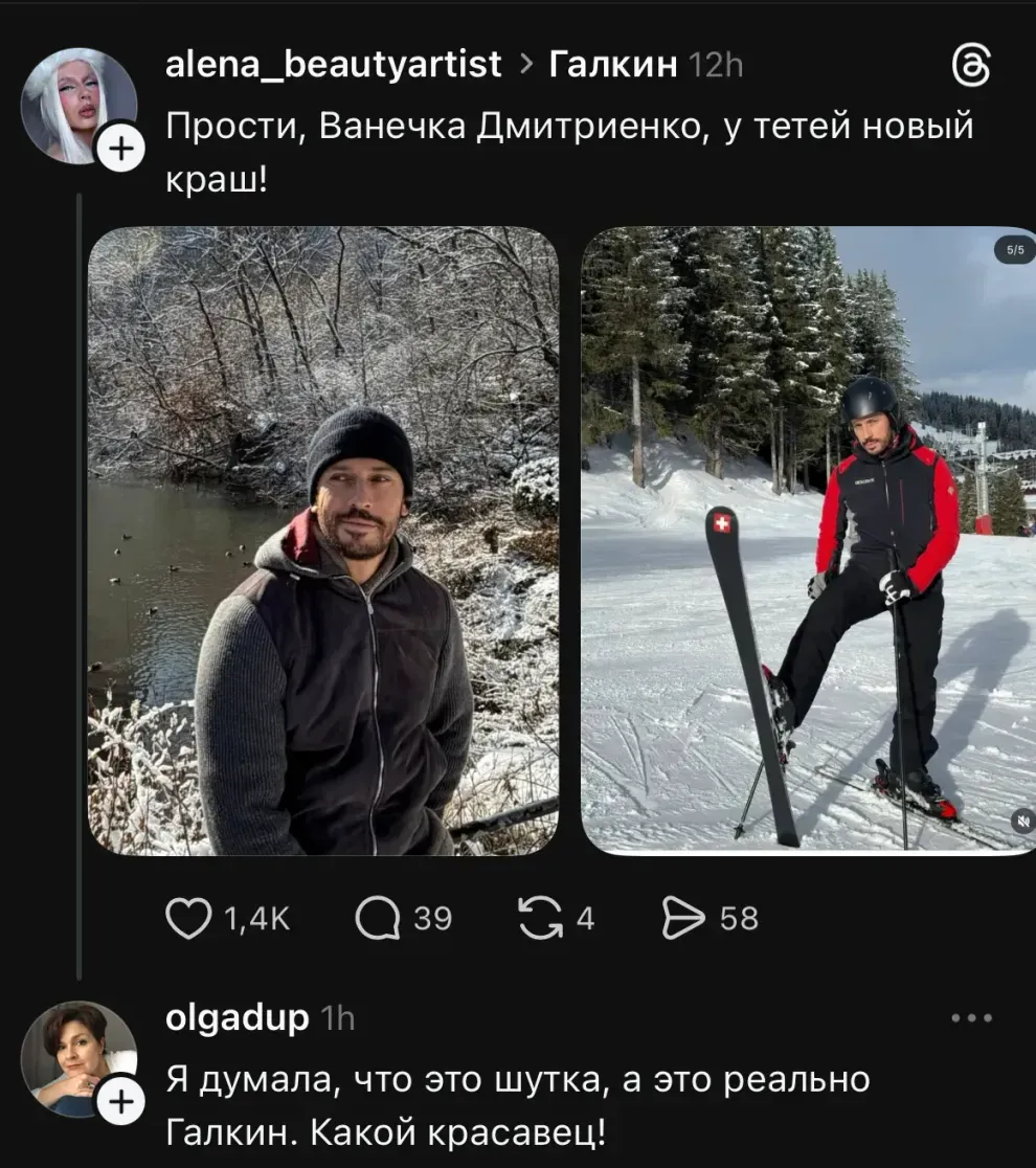 Некоторые даже спутали его со звездой нашумевшего сериала «Жаркое соперничество» Скоттом Хантером, что лишь подогрело интерес. Ранее Галкина на фоне трансформации уже сравнивали с другим бывшим мужем Пугачевой — Филиппом Киркоровым.