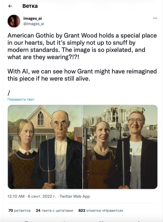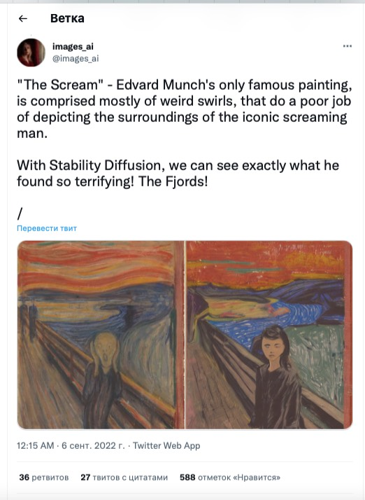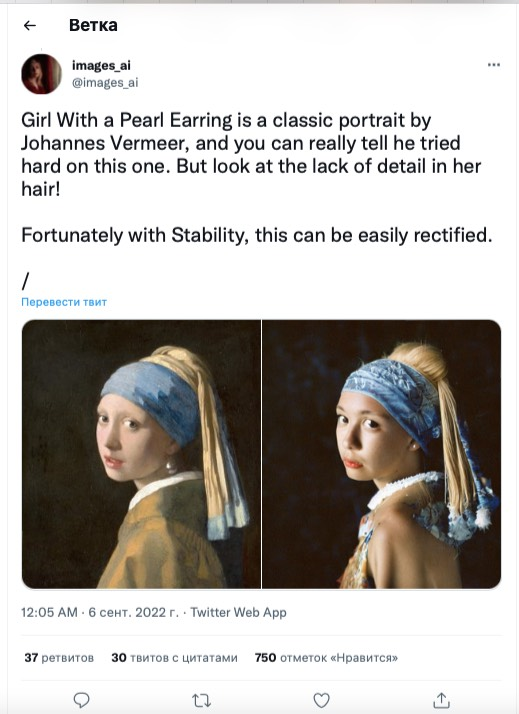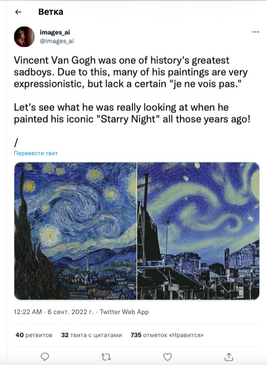Художница из США Cэм решила узнать, как бы выглядели картины известных художников, если их подправить при помощи искусственного интеллекта. Результатом она поделилась на своей странице в Twitter.