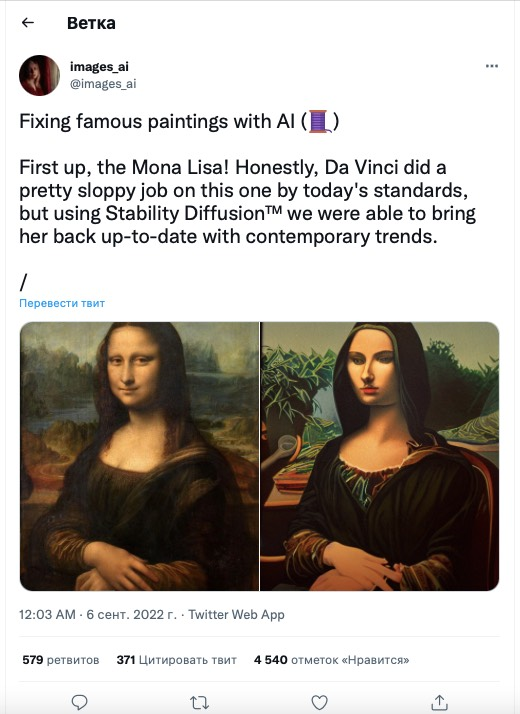 Она сделала известные произведения искусства современными при помощи нейросети Stable Diffusion. В результате эксперимента у Моны Лизы появились брови, картина Ван Гога «Звездная ночь» лишилась своей магии, а «Воскресный день на острове Гранд-Жатт» Жоржа Сёра стала выглядеть как фотография. Об этом пишет Горящая Изба.