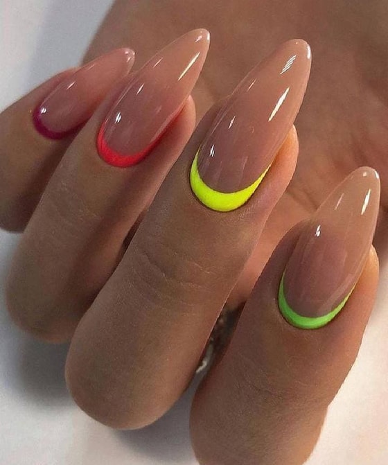 Френч – классика, которая никогда не выйдет из моды, но можно ее воплотить и в других проявлениях. Новый тренд сезона - обратный френч. Для поднятия настроения попробуйте сделать его в ярком цвете.