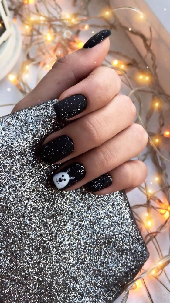 Черные звездочки, нарисованные на всех или нескольких ногтях, подойдут к любому наряду, будь то пижама, платье или брючный костюм.