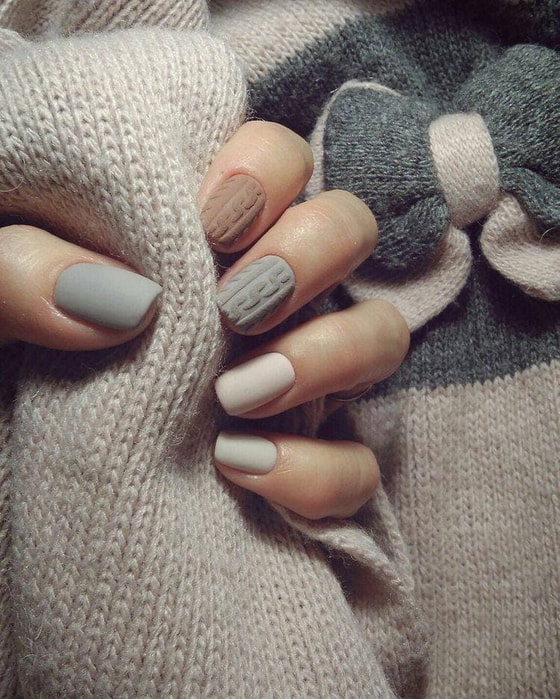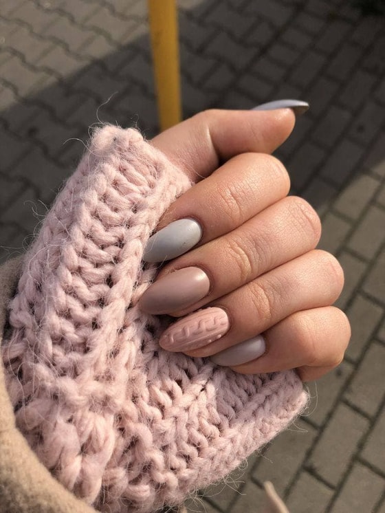 «Согреем» свои ноготочки выпуклым дизайном, напоминающий шерстяную вязку.