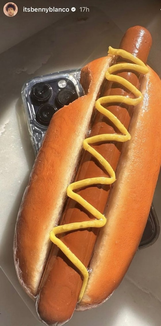 К слову, новый возлюбленный Селены Гомес не оценил идею Бибер. Бенни Бланко открыто высмеял знаменитость, выложив фото своего телефона в чехле, поверх которого был хот-дог.