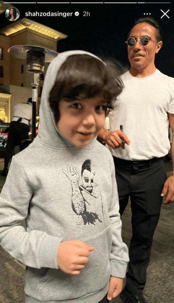 Причем рядом с ее сыном Халидом стоял известный шеф-повар Нусрет. На ребенке также худи с изображением повара.