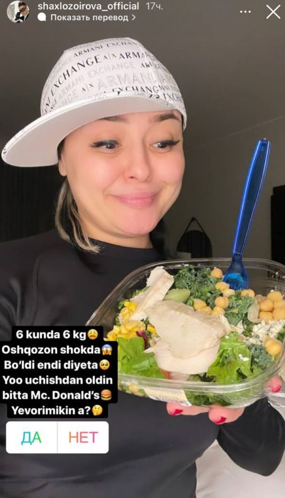 Шахло Зоирова сфотографировалась с салатом и добавила, что отныне, она на диете.