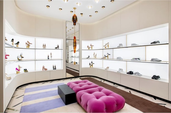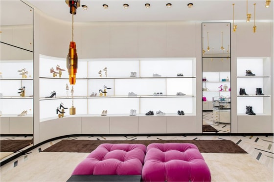 В бутике в Ташкенте предусмотрено зонирование на основные отделы, где будут представлены полный ассортимент женской одежды Valentino, а также обувь и аксессуары Valentino Garavani. Также есть специальные зоны, зарезервированные для частных встреч.