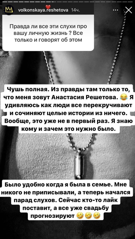По словам звезды, это все ложь и правда там только то, что ее зовут Анастасия Решетова.