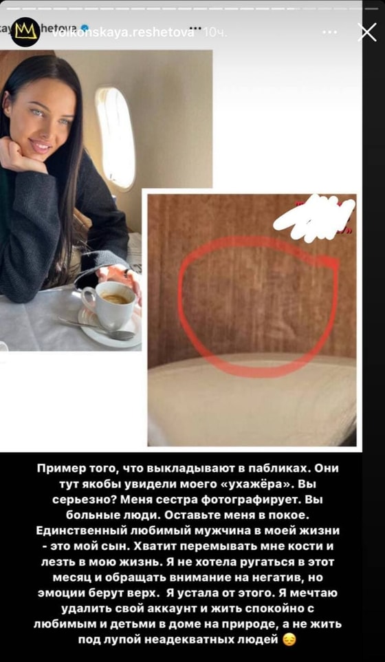 Позже в stories Настя добавила, как в одном телеграм-канале выложили фото модели в самолете и якобы заметили лицо молодого человека на отражении самолета.