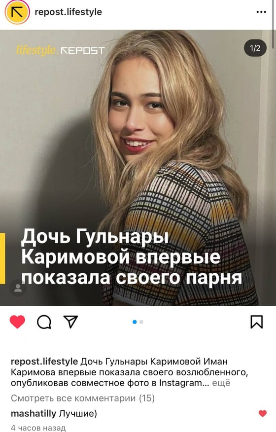 Сегодня, 6 января дочь Гульнары Каримовой Иман впервые поделилась фотографией со своим возлюбленным. Кроме поклонников девушки, за нее рада одна из родственниц.
