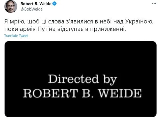Я мечтаю, чтобы эти слова [Directed by Robert B. Weide] появились в небе над Украиной, пока армия Путина униженно отступает, – написал сценарист.