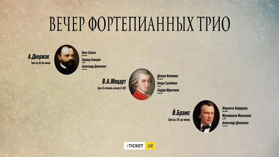 - А.Дворжак – Иван Сайков (фортепиано), Хуршид Хамидов (скрипка) и Александр Денисенко (виолончель).