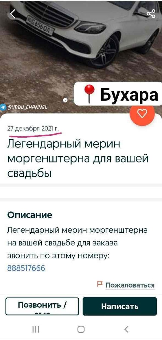 Счастливчиком оказался мужчина из Бухары, который торжественно забрал ключи от Mercedes. Теперь же пользователи заметили на одном из узбекских сайтов объявление, в котором эта машина сдается в прокат, сообщает Telegram-канал Участники Дорожного Движения Узбекистана