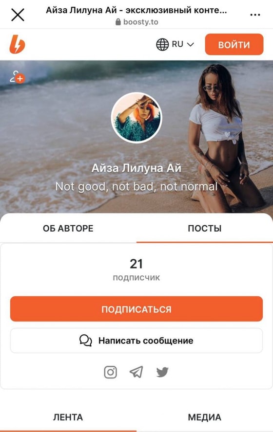 Похоже, нашлись те кому этого мало, Айза приглашает их перейти на другую платформу, где будет размещать снимки без цензуры. Теперь у девушки есть страница на сайте Boosty. Там она хочет общаться со своей преданной аудиторией, делиться уникальными роликами и откровенными снимками.