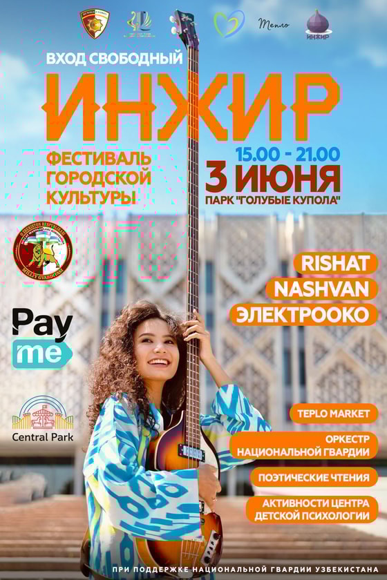 Отметим, «Инжир» – некоммерческий фестиваль. Он создается горожанами для горожан. Вход в парк, на все активности и на концертную площадку – бесплатный для всех без ограничений. Это стало возможным благодаря поддержке Национальной Гвардии Узбекистана, компании Payme и Центральному парку имени Мирзо Улугбека.