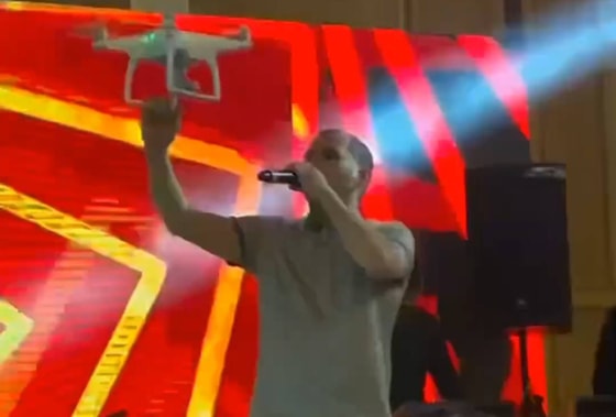 Накануне в пабликах снова распространилось видео с участием исполнителя. На этот раз гостям свадебного мероприятия удалось заснять «танец» музыканта с дроном.