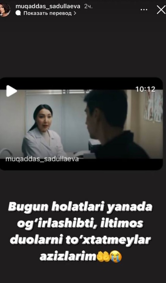 Накануне узбекская киноактриса Мукаддас Садуллаева сообщила своим поклонникам грустную новость об ее отце. Оказалось, Народный артист Лутфулла Садуллаев попал в реанимацию. По словам знаменитости, за день до этого инцидента она с детьми была в гостях у родителей, а отец был полностью здоров.