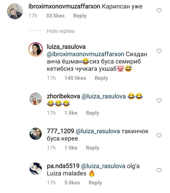 В комментариях фолловеры поддержали ответ девушки на комментарий.