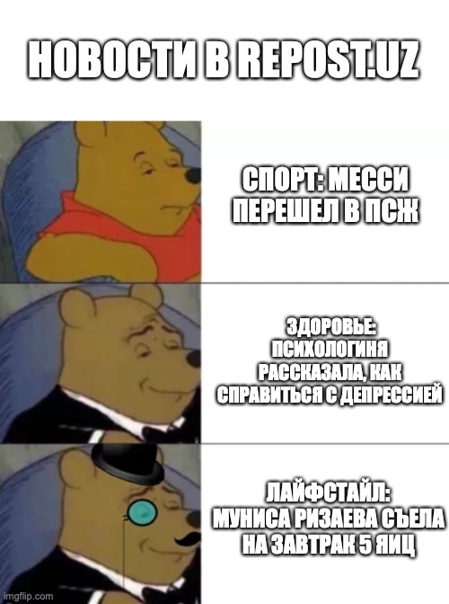 Узбекистан 11.08.2021 | 18:20 Подборка мемов с узбекскими звездами Смотрите новую подборку Repost Lifestyle, которая несет исключительно юмористический посыл? Бонус: Больше новостей о стиле жизни в Телеграм-каналеПодписаться Последние новости Актера из «Голодных игр» арестовали после стрельбы 17.04.2026 / 18:30 Инсайдеры слили цвета следующего iPhone 18 Pro 17.04.2026 / 17:30 Дмитрий Нагиев запустил тренинги за 2 млн руб 17.04.2026 / 16:30 Бурак Дениз оказался в центре скандала 17.04.2026 / 15:30 Chupa Chups выпустит леденец со вкусом фрикаделек из IKEA 17.04.2026 / 13:30 «Я не виновен»: Артем Чекалин записал обращение перед приговором 17.04.2026 / 12:30 Мохаммед бен Рашид Аль Мактум закрыл «Парус» на ремонт 17.04.2026 / 11:30 Вышел трейлер фильма о шоколадной империи Hershey’s 17.04.2026 / 10:30 Гороскоп на 17 апреля для всех знаков зодиака 17.04.2026 / 08:30