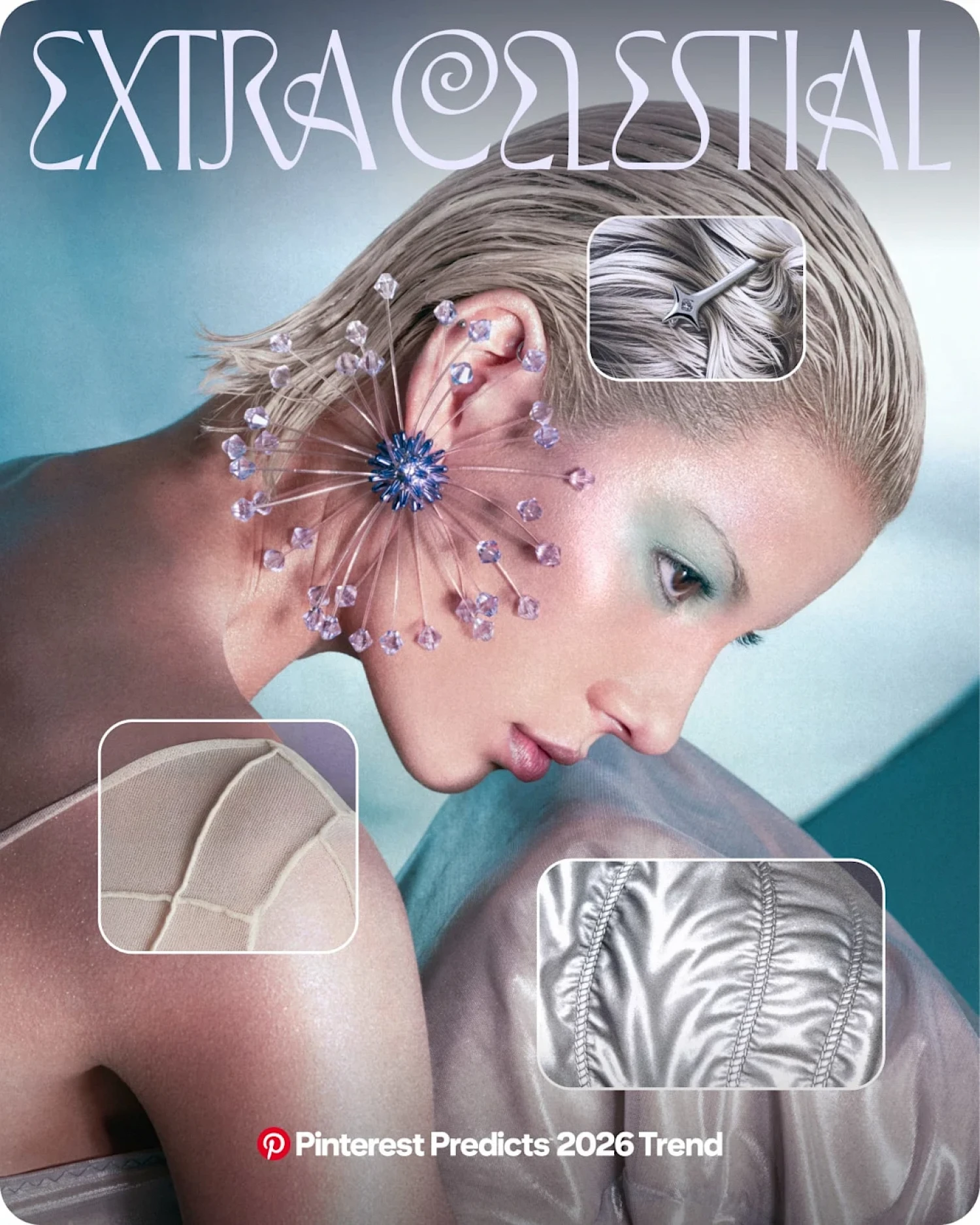 Согласно ежегодному прогнозу социальной сети Pinterest, определяющей визуальную культуру интернета, в 2026 году доминировать будут холодные синие оттенки, готическая романтика, гламур с глитчем и ностальгия по декадансу.