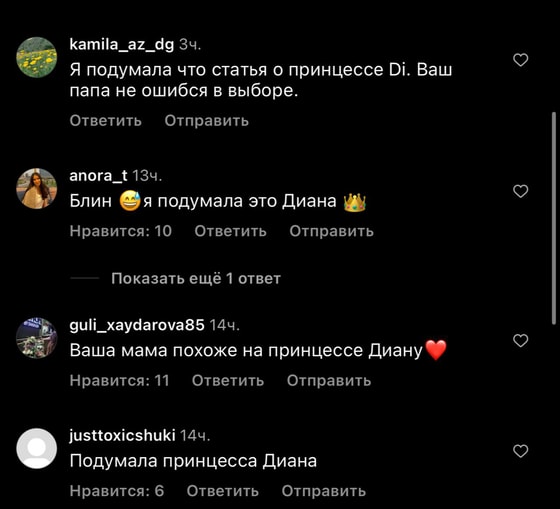 Кроме этого, практически все комментаторы написали о поразительной схожести Гульнары Юлдашевой с принцессой Дианой.