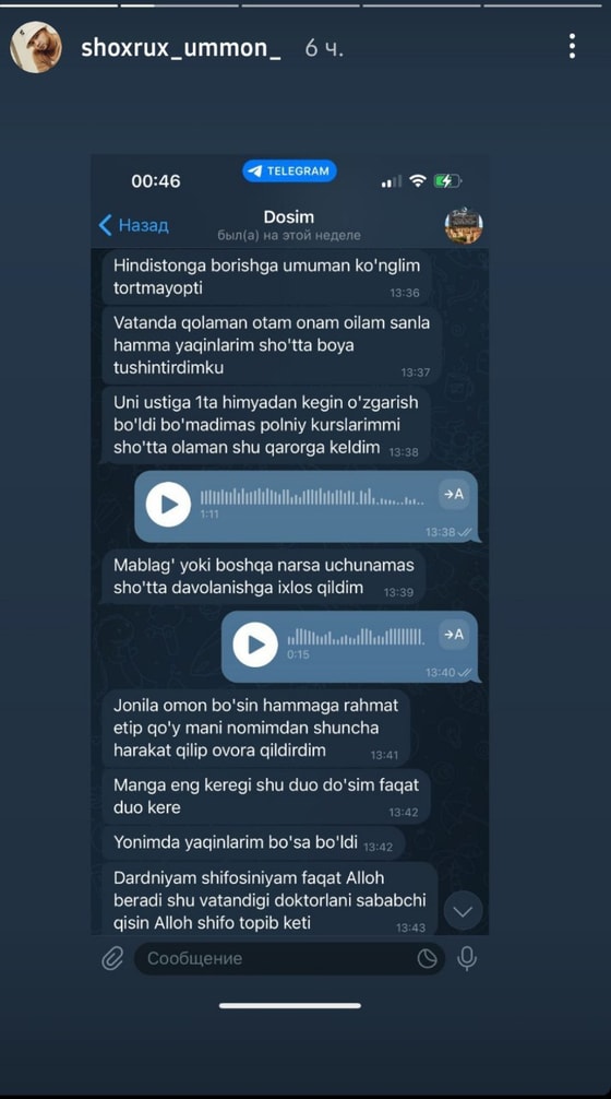 Я не хочу уезжать не из-за нехватки финансов, а потому что хочу быть рядом с семьей. Все что я прошу – молиться за меня, потому что надежда только на Всевышнего, – писал Джасур Рафиков.