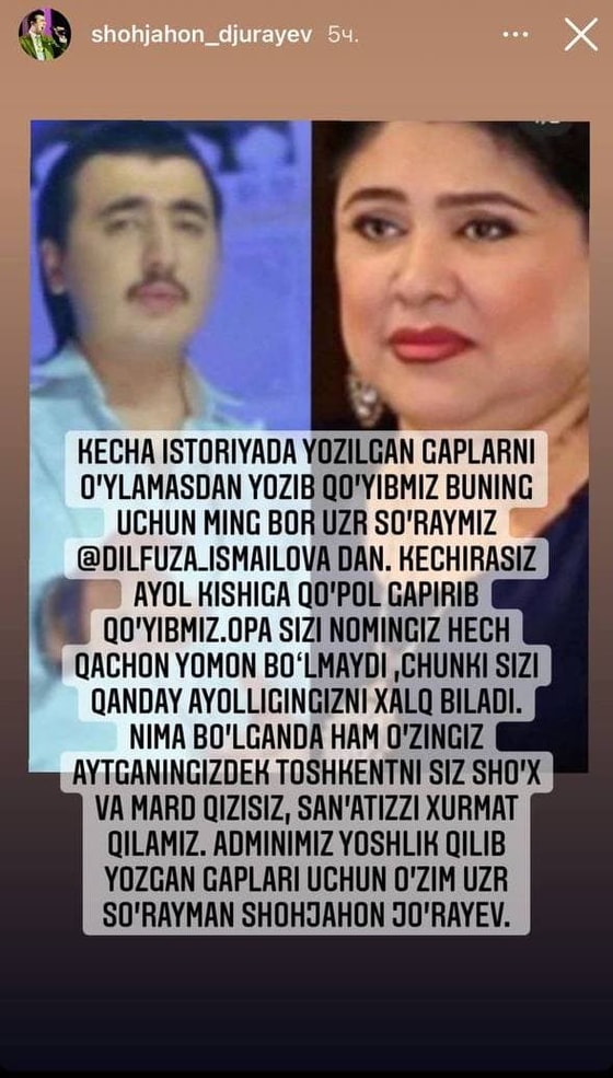 Сегодня же Джураев принес свои искренние извинения, отметив, что были написаны необдуманные слова более того, это дело его админа.
