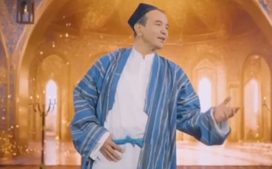 На ролике его можно увидеть в национальном костюме в компании танцовщицы, которая исполняет узбекский танец.