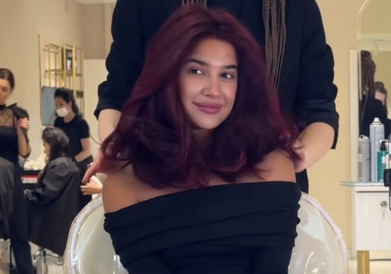Блогер сменила цвет волос на трендовый в соцсетях «вишневый».
