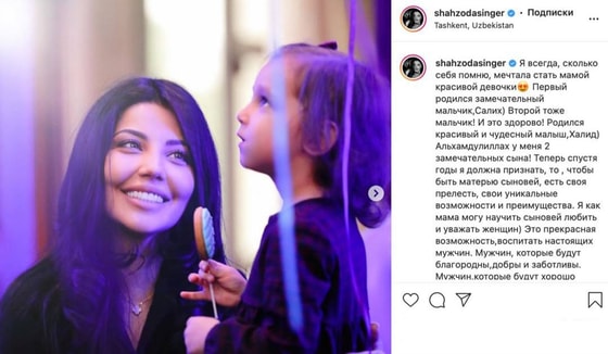 Узбекская исполнительница Шахзода написала новый пост в свой Instagram аккаунт, где рассказала про преимущества матери двух сыновей.