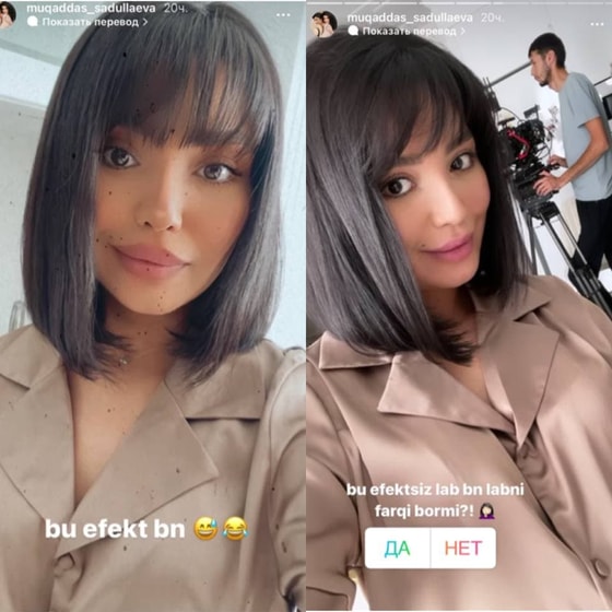По словам артистки, это всего лишь Instagram эффект, который увеличивает губы на камере. В доказательство своим словам, Мукаддас сфотографировалась с фильтром, а затем поделилась фото без фильтра.