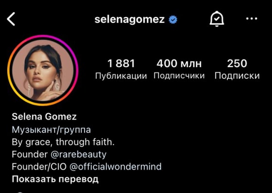 Популярная исполнительница Селена Гомес стала первой девушкой, которой удалось преодолеть отметку в 400 миллион подписчиков в Instagram.