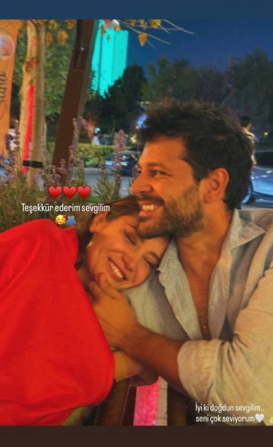 Эмре Кивилчим поделился со своими подписчиками милым снимком, на котором пара счастливо улыбается, сопроводив его короткой, но емкой подписью: