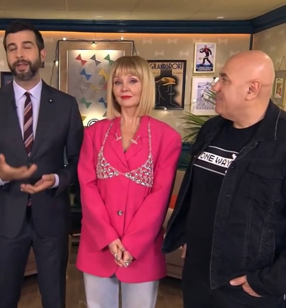 Также особое внимание уделили необычному образу певицы. Она надела купальный лиф со стразами поверх плотного пиджака.