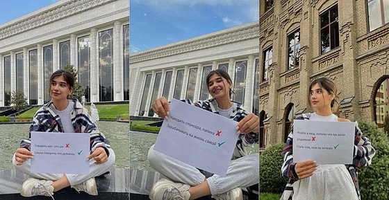 Девушка распечатала несколько листовок со стереотипами и под ними написала свой взгляд на происходящее. Среди которых были такие навязанные устои, как: «Все должны говорить на узбекском языке», «Девушкам находят спонсора для того, чтобы тот содержал их», «Говорить нет - уят» и «Выходить замуж, потому что нашлась хорошая партия».