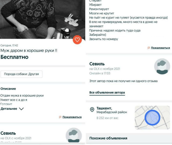 На платформе онлайн-объявлений OLX появилось объявление от пользователя по имени Севиль, которая продает своего супруга.