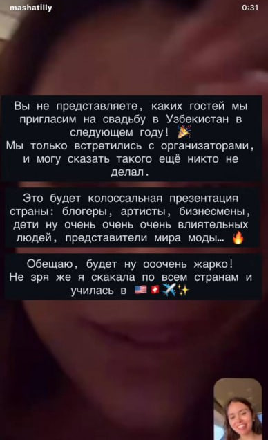 Вы не представляете, каких гостей мы пригласим на свадьбу в Узбекистан в следующем году! Мы только встретились с организаторами, и могу сказать: такого еще никто не делал, — поделилась Марьям в Instagram.