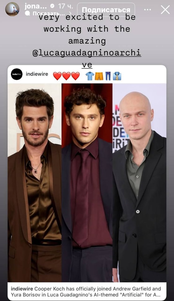 Новый проект Гуаданьино будет основан на событиях 2023 года, когда генерального директора OpenAI Сэма Альтмана сначала уволили, а затем восстановили в должности в течение нескольких дней. Главную роль исполнит Эндрю Гарфилд, а Юра Борисов сыграет сооснователя компании Илью Суцкевера. Съёмки начнутся этим летом в Сан-Франциско и Италии.