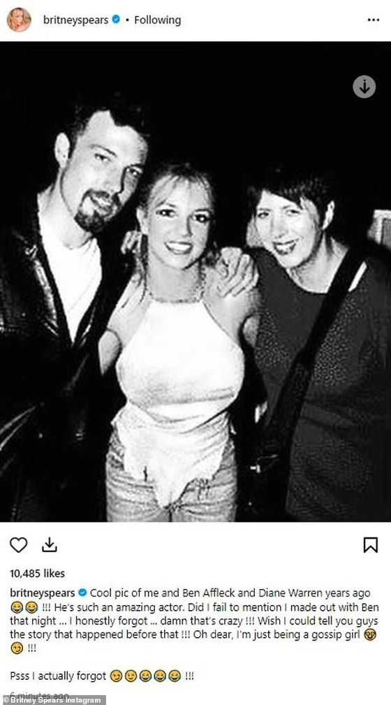 Классная фотография меня, Бена Аффлека и Дайан Уоррен много лет назад. Он такой потрясающий актер. Разве я не говорила, что целовалась с Беном в ту ночь. Честно говоря, я забыла. Черт, это безумие! Хотела бы я рассказать вам, ребята, историю, которая произошла до этого! Боже, я сплетница, — отметила она.