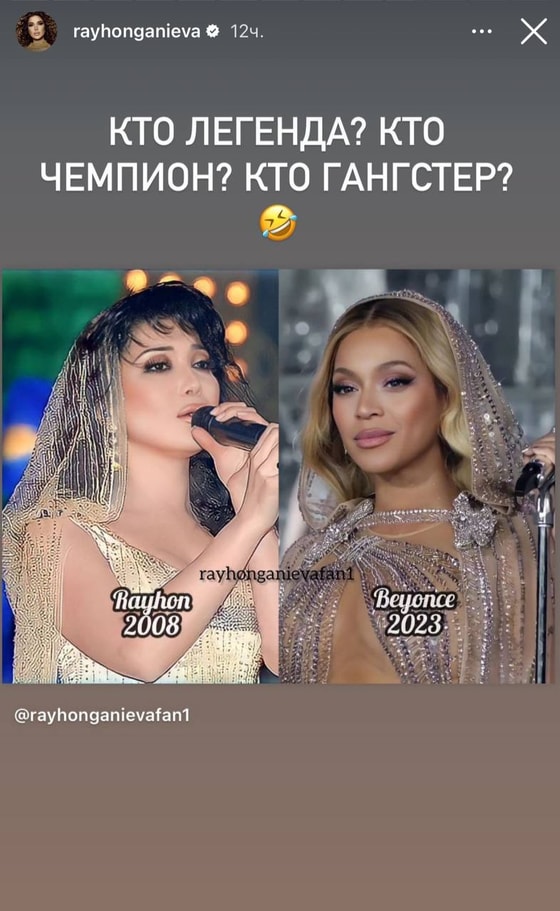 Накануне певица Райхон опубликовала интересный коллаж у себя Stories. Ее фанаты сравнили концертный наряд Райхон 2008 года с образом Бейонсе этого года.
