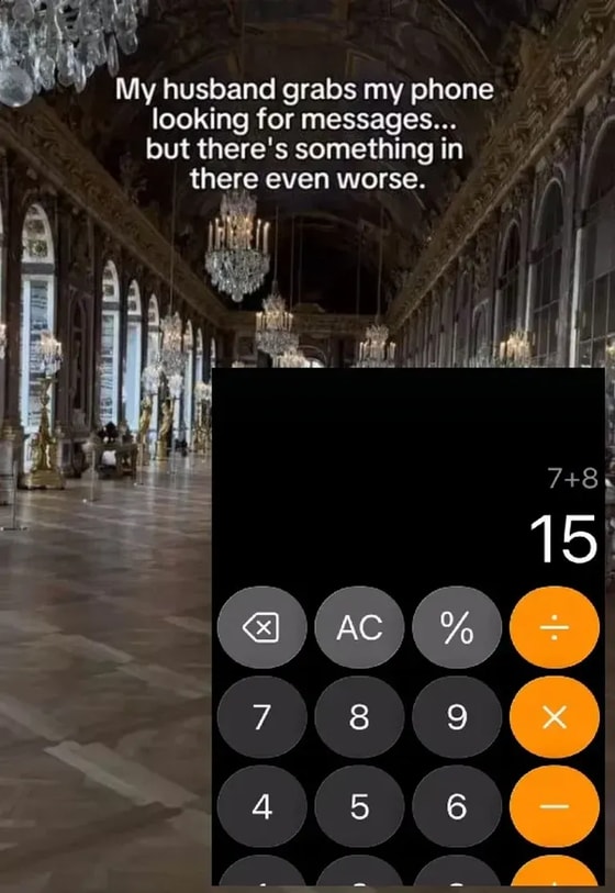 Мой муж хватает мой телефон в поисках переписки с другими, но там есть нечто похуже…, приложив скриншот калькулятора с примером «7+8».