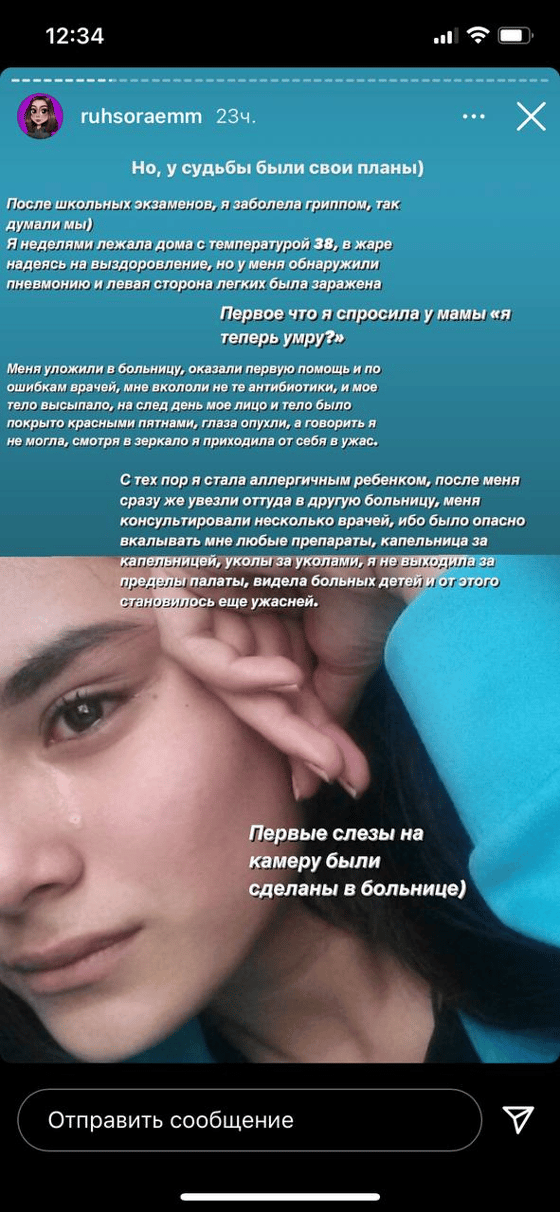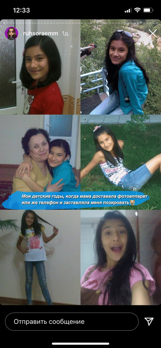 Недавно в своих stories блогер Рухсора поделилась историей своего взросления и детскими фотографиями.