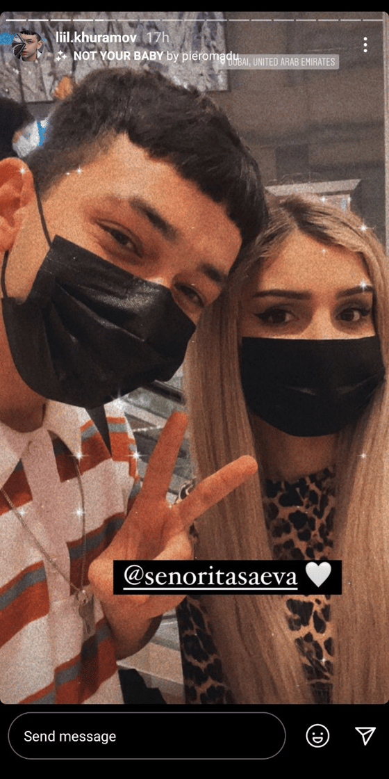 Недавно блогер и тиктокер Озод Хурамов, более известный под псевдонимом Liil Khuramov опубликовал фото, на котором Дина Саева и Озод Хурамов стоят рядом. Stories блогер никак не подписал, лишь отметил Дину.