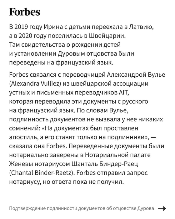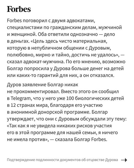 Forbes подтвердил подлинность предоставленных документов через независимого переводчика из Женевы, к которому обращалась Болгар.
