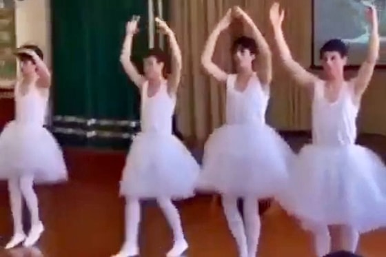 В интернете распространилось видео, как восемь выпускников школы в Махачкале надели балетные пачки и станцевали для одноклассников, сообщает телеграм-канал Лента дня.